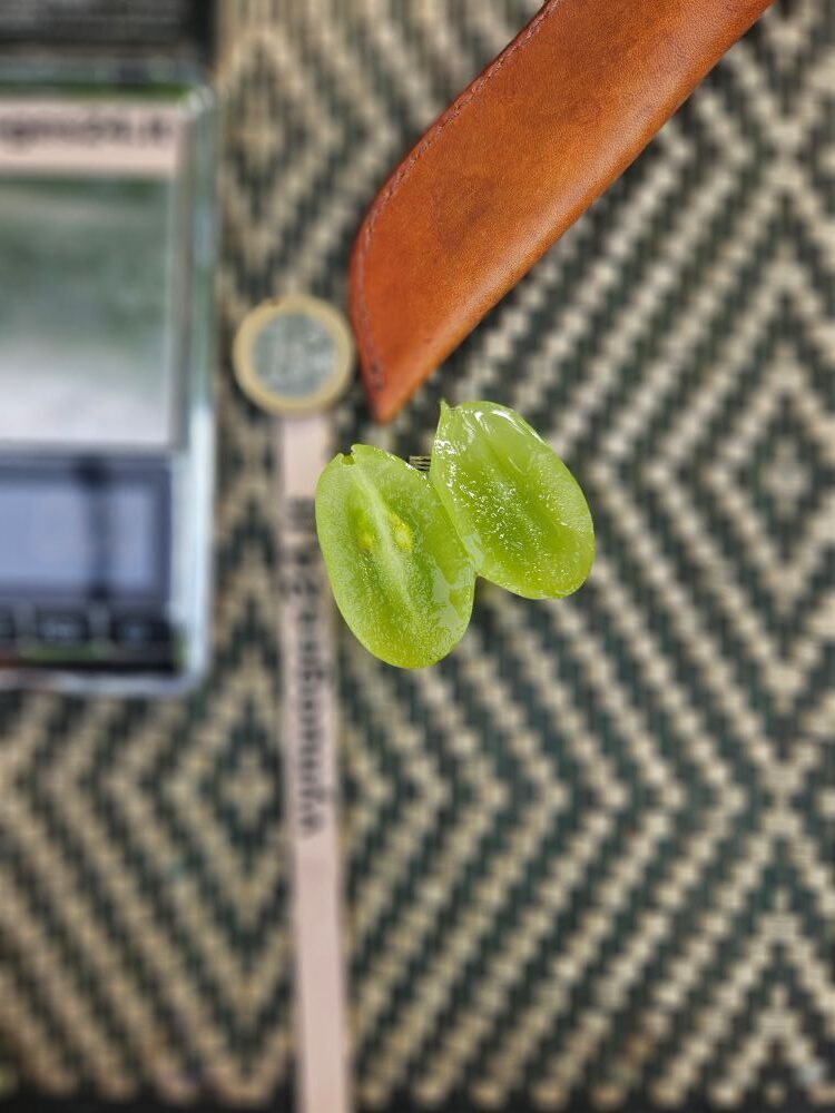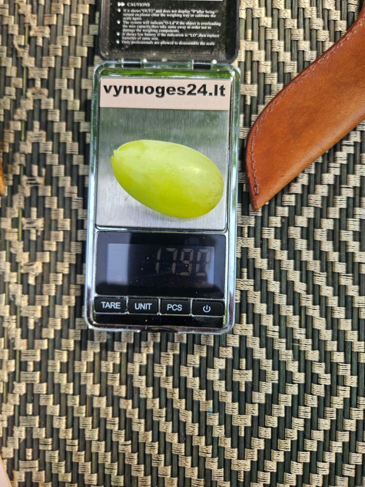 Aisberg – early ripening grapes, Kalugin V.M. selection. Bunch 700-1300 gr. The berries are green, greenish-pink when fully ripe, oblong, 48×24 mm in size, weighing 15-20 g. The flesh is dense, juicy, with a harmonious flavour and high sugar content.