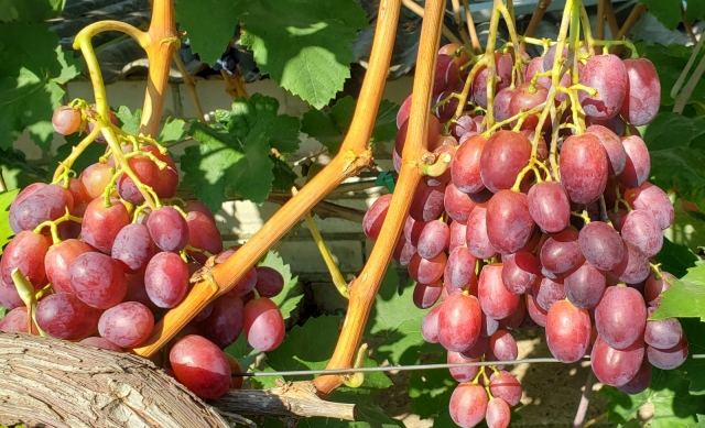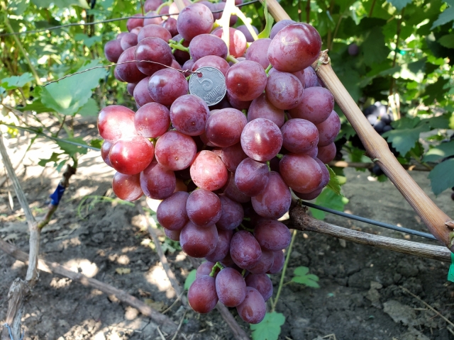 “Aksia” grapes, selected by “Opryshko N.V.”, a delicious and beautiful mid-ripening grape variety with large berries of 18-25 g. Bunches weigh about 800-1200 g. The berries are crunchy, with a light muscat aftertaste.