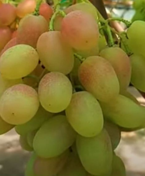 The “Botsman” grape is a new hybrid table grape variety bred by V.M. Kalugin. It is known for its large clusters and berries, frost resistance, and harmonious flavor with muscat notes. It ripens mid-early (approximately 100-110 days). Its berries are large (up to 40-45 mm) and weigh 18-25 grams, white-pink or pink with a bloom, and the clusters reach 0.7-1.5 kg or more. The variety is self-fertile, vigorous, and requires strong training.