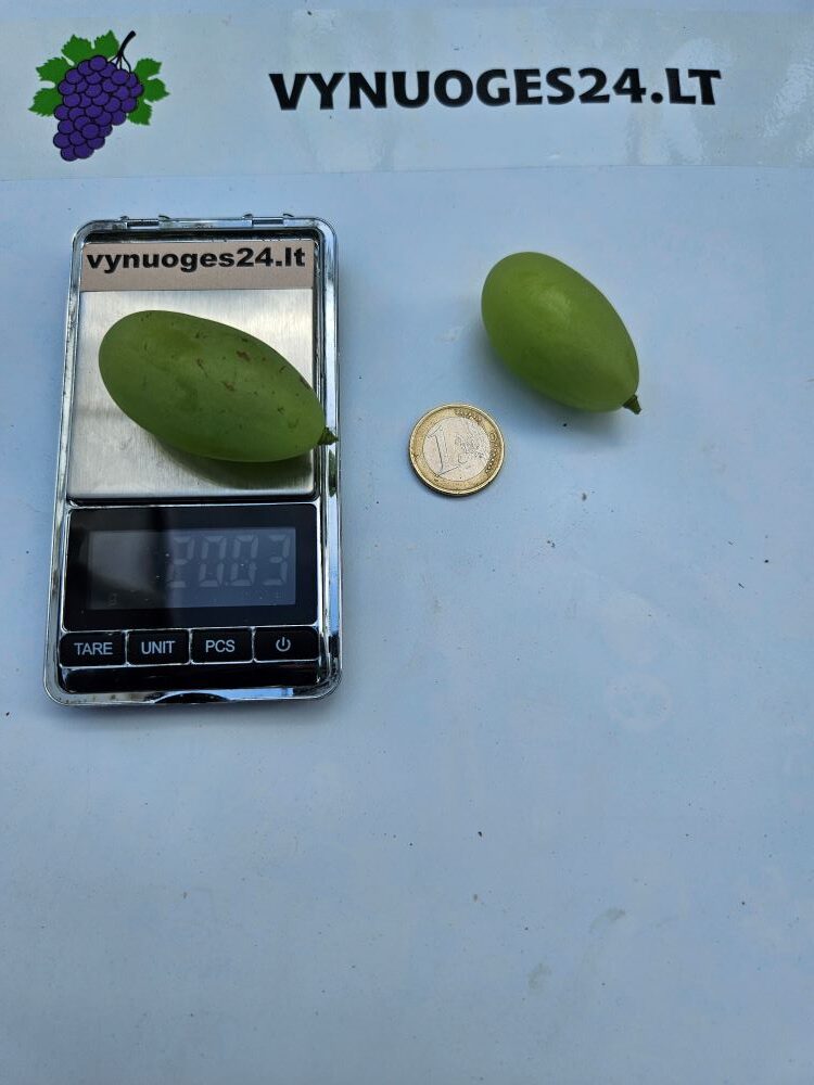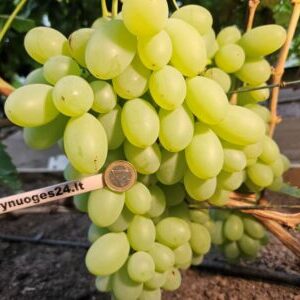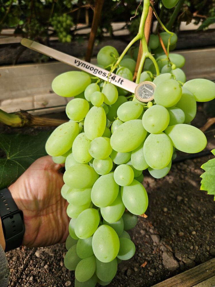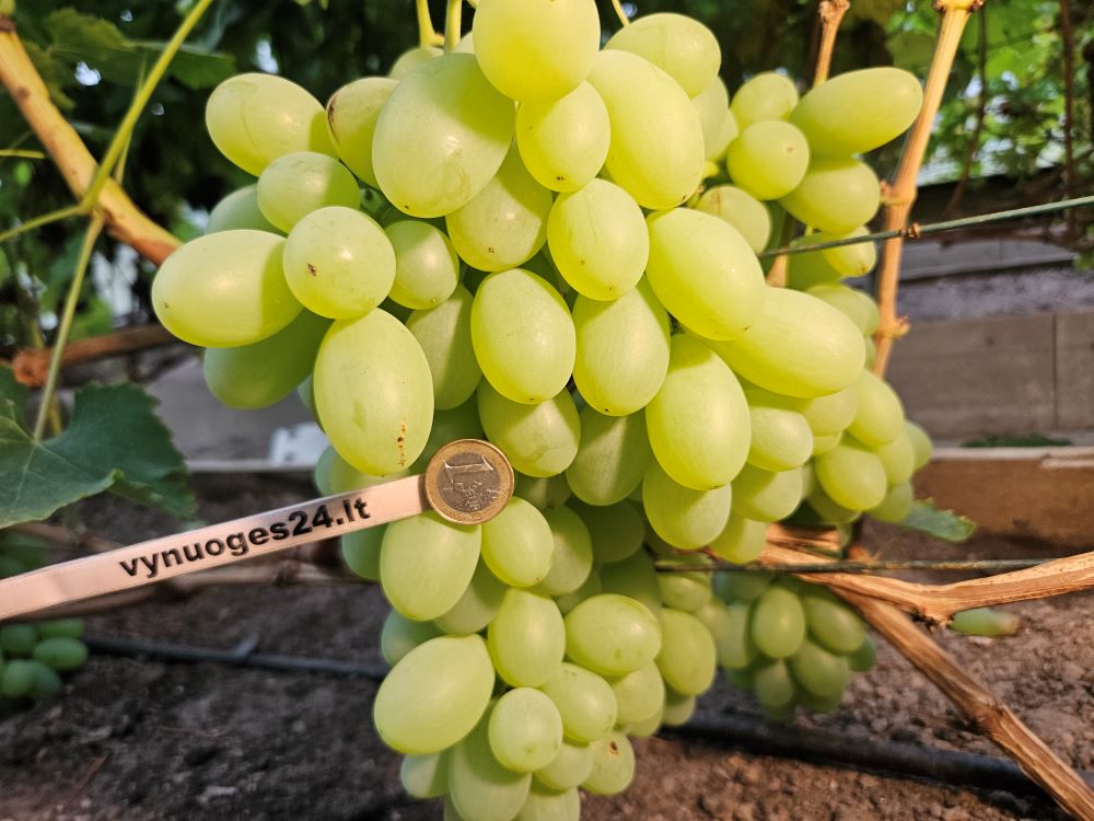 Super new! Buba is a hybrid form with an average ripening period of 120-130 days. White berries weighing 25-35 g. The flesh is dense, crisp, with a harmonious flavour. Bunch weight 1000-1200 g. Cold hardiness -23C.