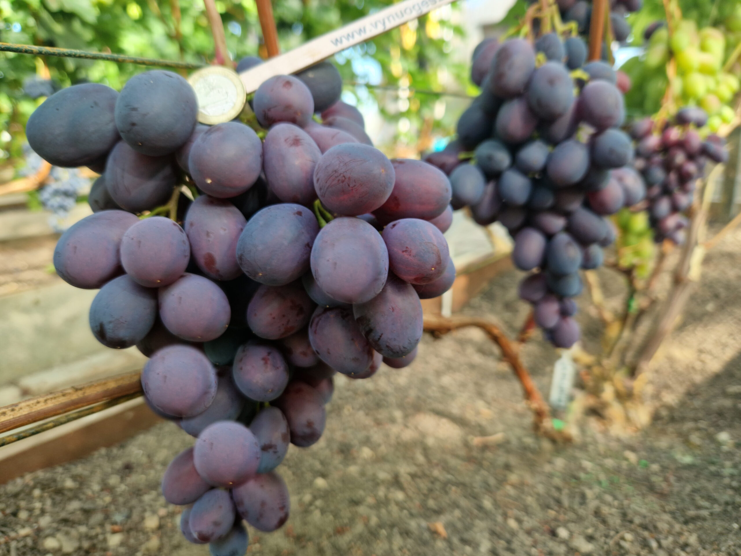 Energodar grapes are a table form of extremely early ripening grapes. The bunches are cylindrical, large, with an average weight of 500-1500g and medium density. The berries are red, very large, average weight 15-20g. Flesh crisp, pleasant cloudiness with nutmeg tones