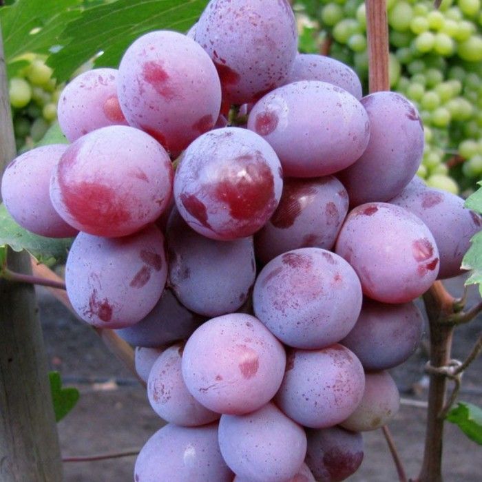 Count of Monte Cristo – table grape variety, early ripening. The bunches are very large. Berries 25-30 g., oval, dense, fully ripe red-violet color. The pulp of the berries is fleshy and sweet. Frost resistance -24°С.
