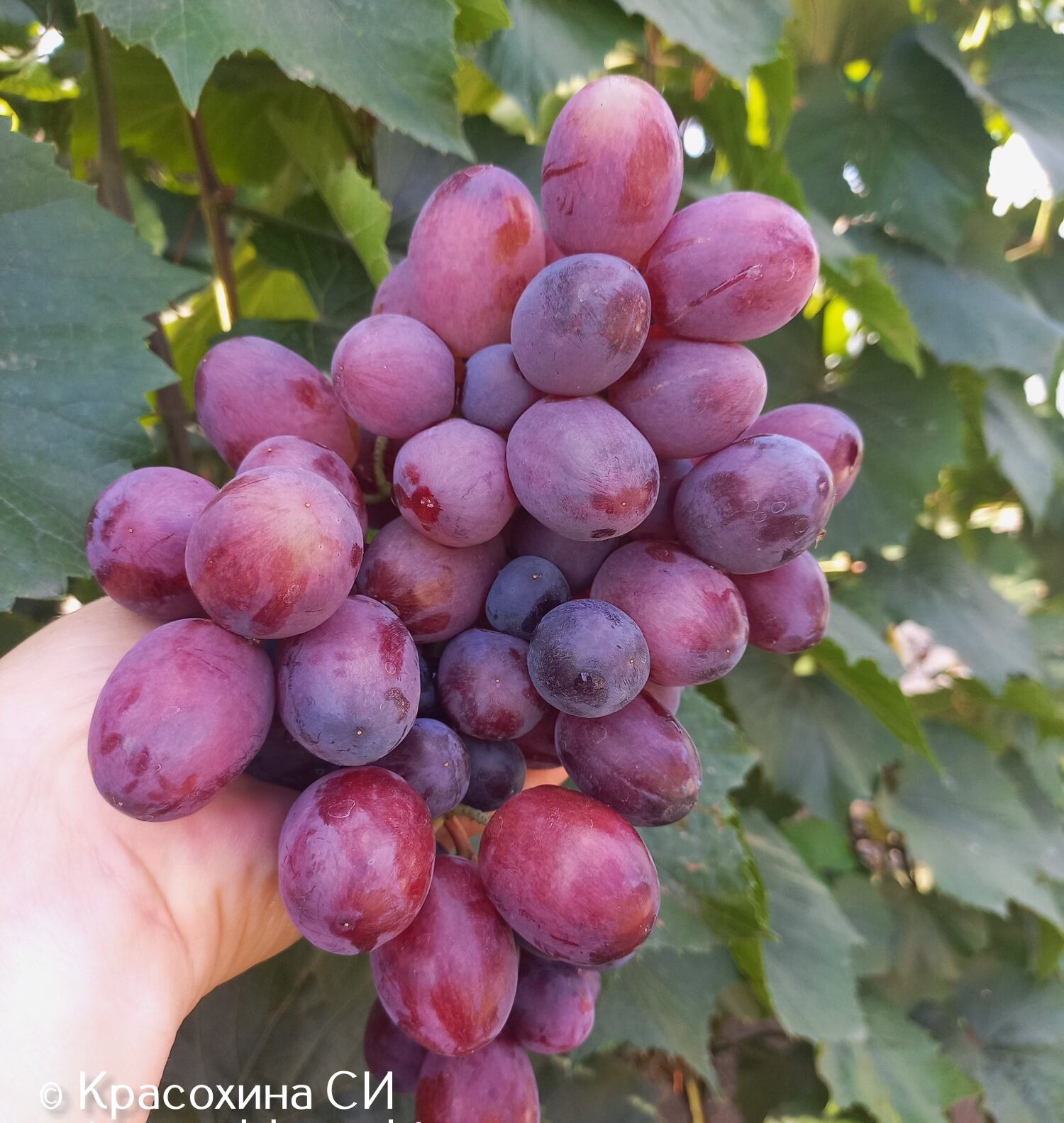 The “Emperatrica” grape variety is a hybrid variety bred by V.M. Kalugin. Ripening period is early-mid-season, 120-130 days. The clusters are large, weighing 800-1200 grams, conical, and medium-dense. The berries are very large, weighing 20-25 grams, oval, and red-purple in color. The flesh is dense, crisp, and juicy, with a harmonious flavor. The yield is high. The bushes are vigorous. Frost resistance is -23°C.