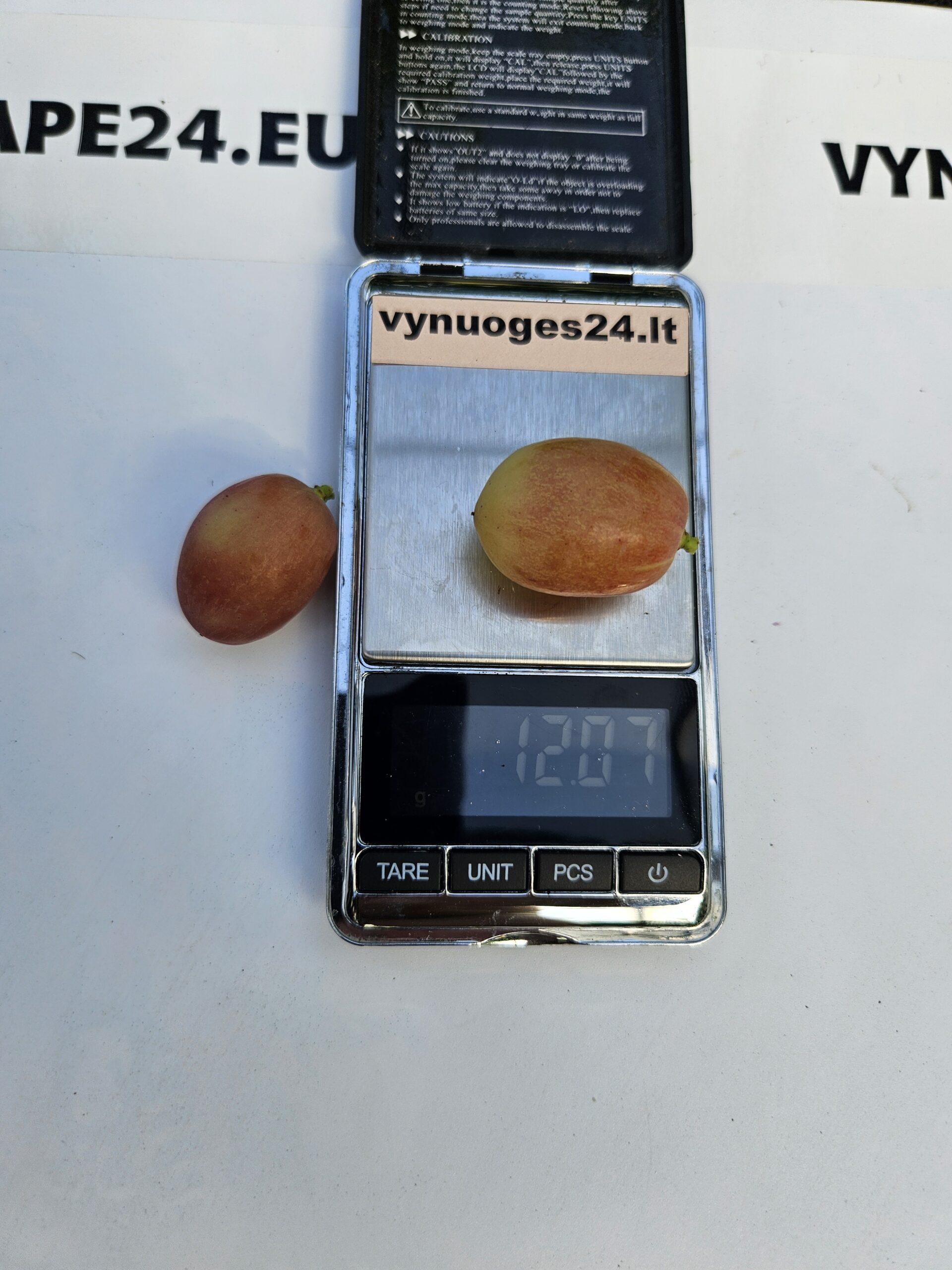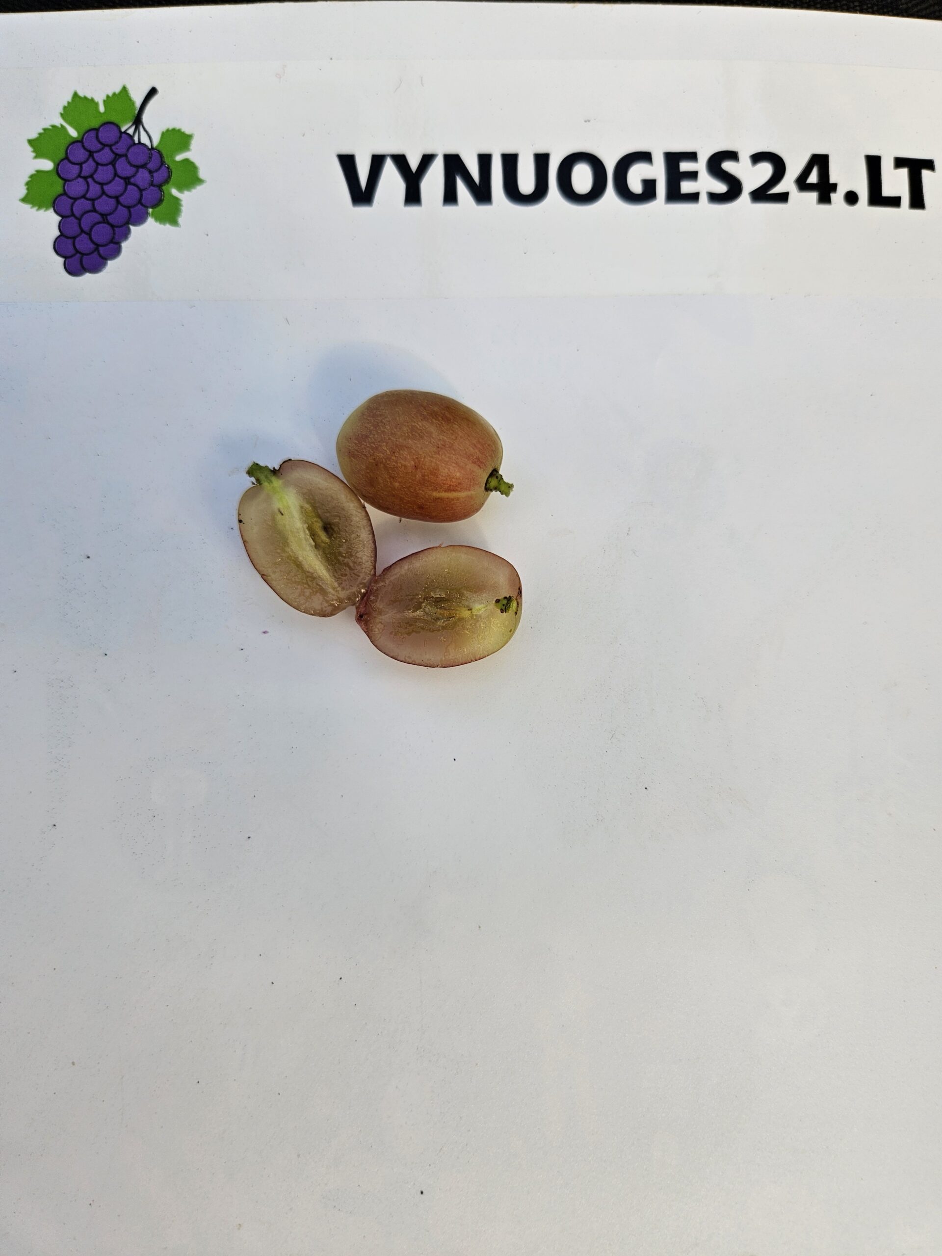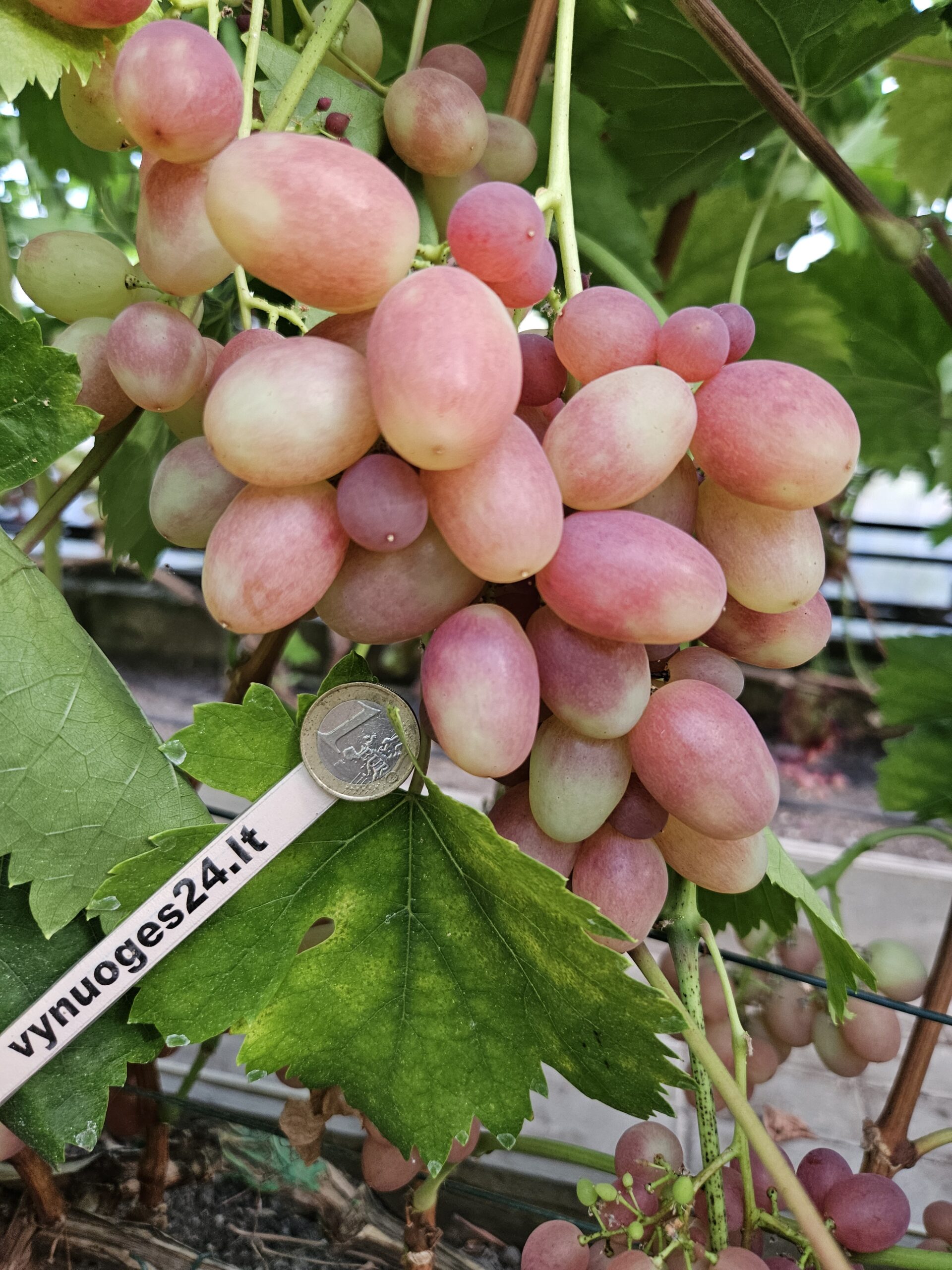 Grapes Konfetka (21-30) – a table form of early ripening grapes. The bunches are cylindrical, large, average weight 500-1500g, medium density. Berries oval, pink, large, average weight 10-12g. Flesh crisp, nutmeg flavour