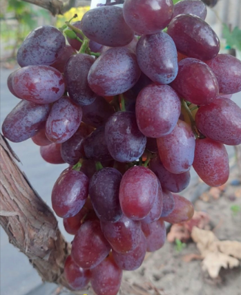 The vines are vigorous. The shoots ripen early and well. Bunches weigh 600-1200 grams. The yield is high. The berries are large (15-18 grams), elongated, and cherry-colored. The flavor is harmonious. The skin is not noticeable when eating.