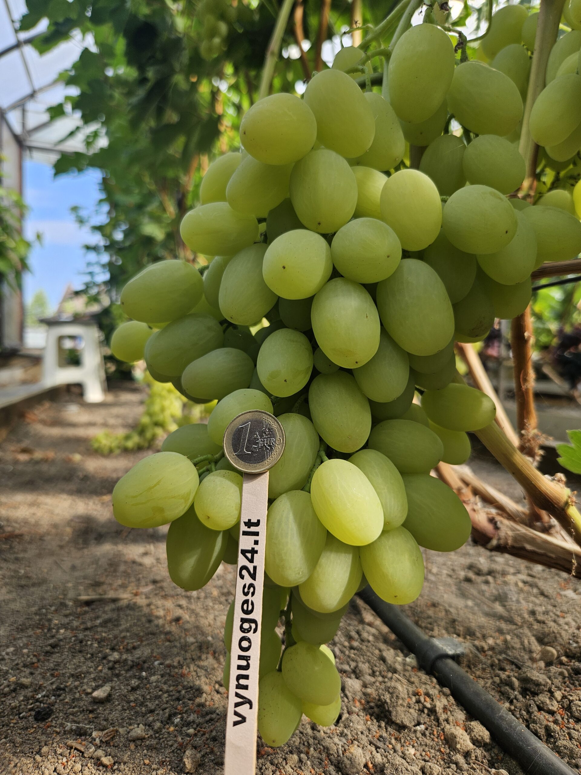 Muscat Dubovsky is a promising hybrid grape, created by crossing Super Extra x Kishmish radiant, bred by G. F. Gusev. The bushes are vigorous. The bunches are large, conical, sometimes with wings, with an average weight of 700-900g and more. Berries oval, white, very large, weighing 12-14 g. The flesh is dense, crisp, with a pleasant nutmeg flavour. The buds have a high yield and yield is high and the bunches need to be normalised. The vine ripens well. No cracking of the berries has been observed. The variety is being tested for disease and frost resistance.