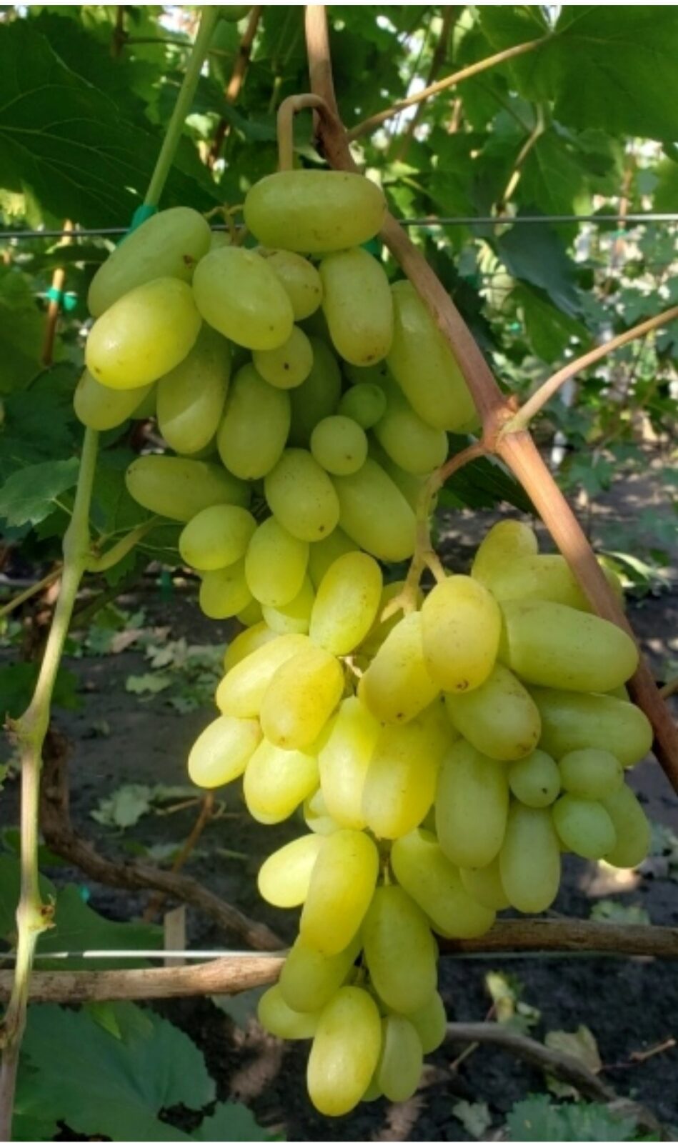 The “Standard” grape is a new hybrid variety bred by V.M. Kalugin. The growing season lasts approximately 100–110 days, so the first ripe bunches appear in late July–early August. The Standard grape bushes are vigorous and ripen well. The clusters are large, cylindrical, and medium-dense, weighing from 600 to 1000 grams, sometimes reaching over a kilogram. The berries of this variety are elongated, with an elongated “finger,” weighing 16–20 grams. The color is rich yellow, sometimes with a slight sunny hue. The flesh is dense, juicy, and pleasantly crisp, with a balanced, harmonious flavor and high sugar content. Standard tolerates temperature fluctuations well and is frost-hardy down to –23°C.