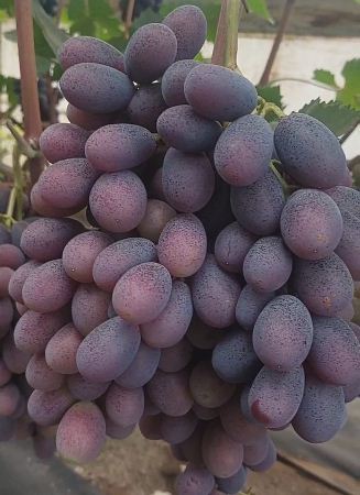 New GF Kalugin V.M. – early ripening period of 100-110 days. Beautiful conical clusters of medium looseness, weighing 700-1200 grams. The berries are very large, 18-25 grams, dark red, almost black, dense, crispy flesh, with its own varietal flavor. Frost resistance -23